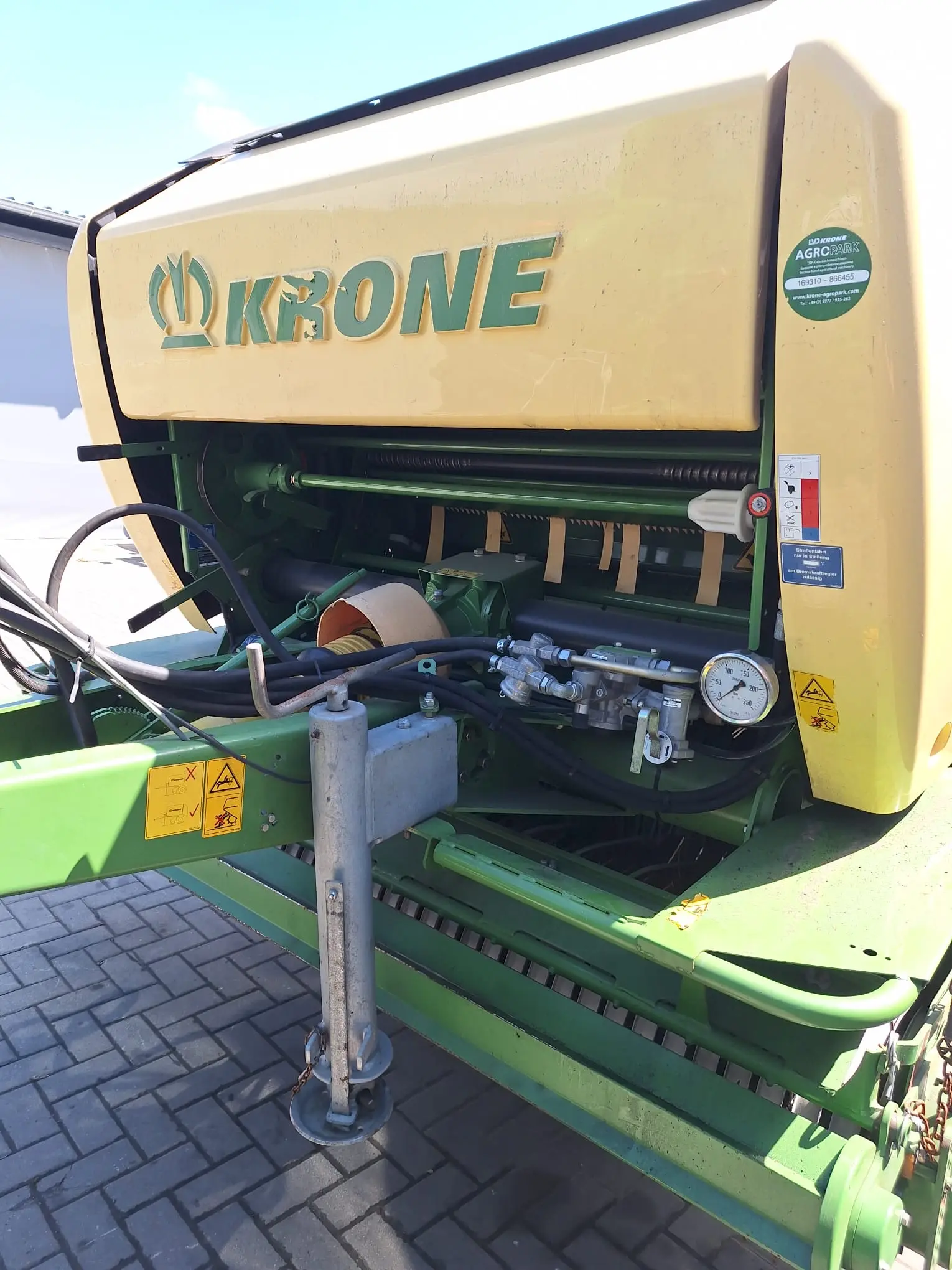 Prasa pracuje sprawnie, gotowa do sezonu. Marka Krone to gwarancja trwałości i niezawodności. Doskonały wybór do gospodarstw szukających solidnego sprzętu do zbioru i belowania.